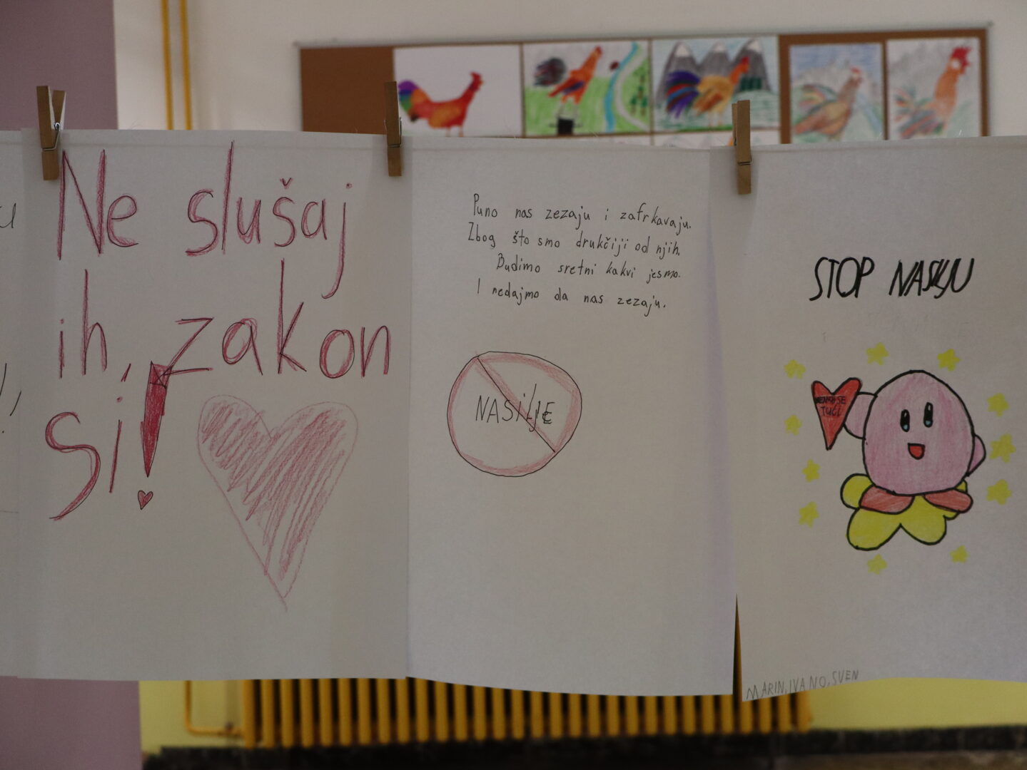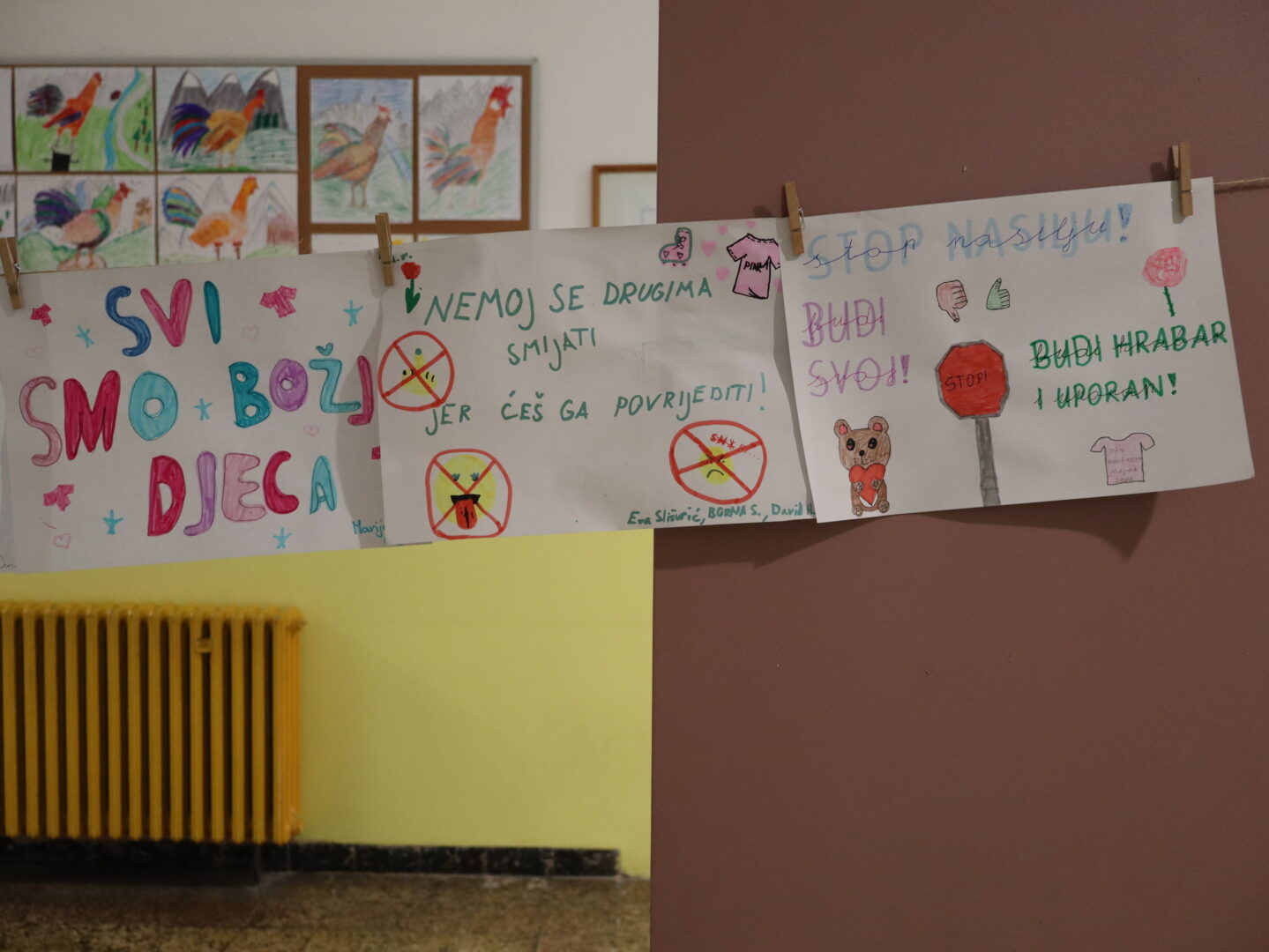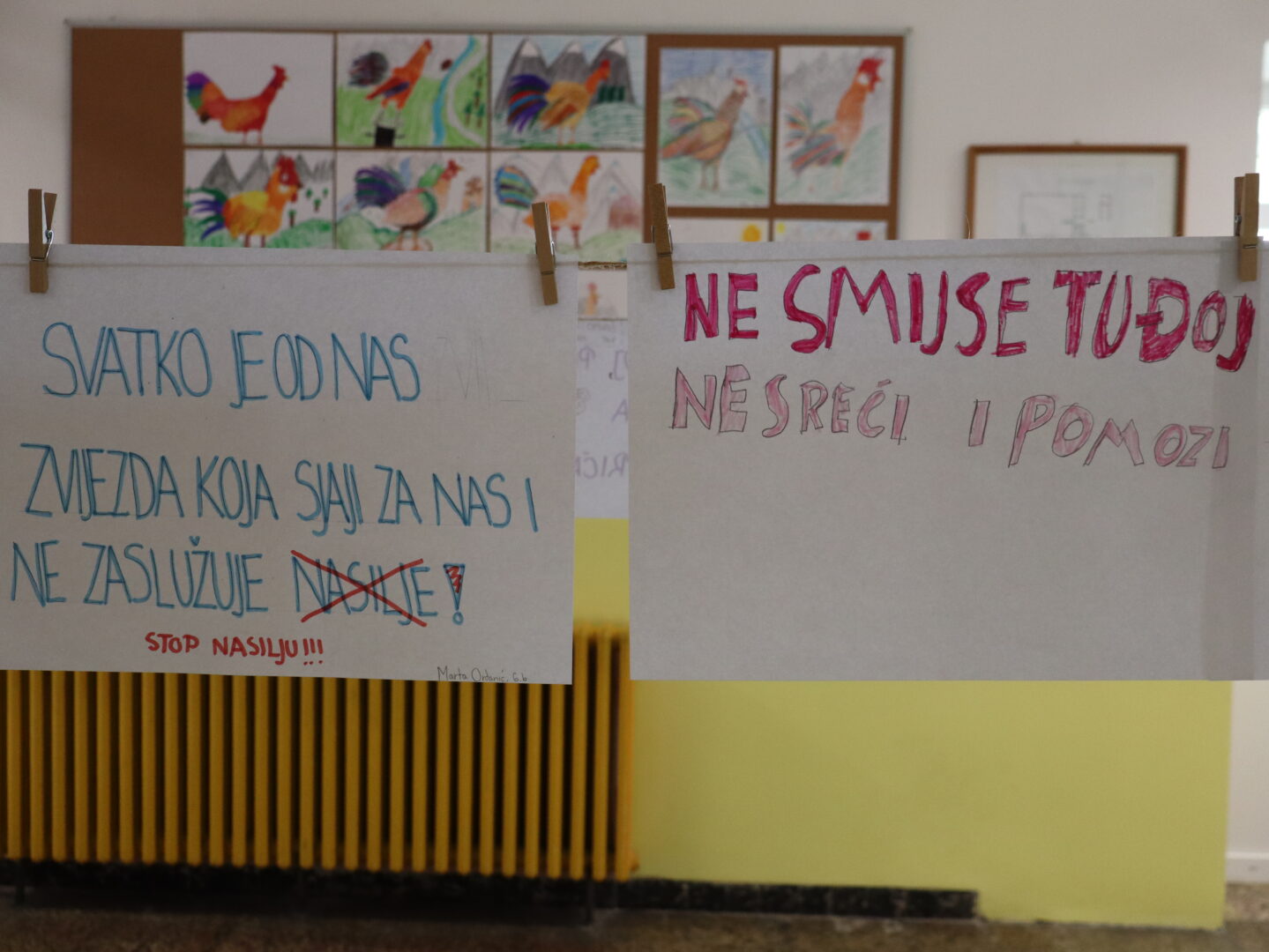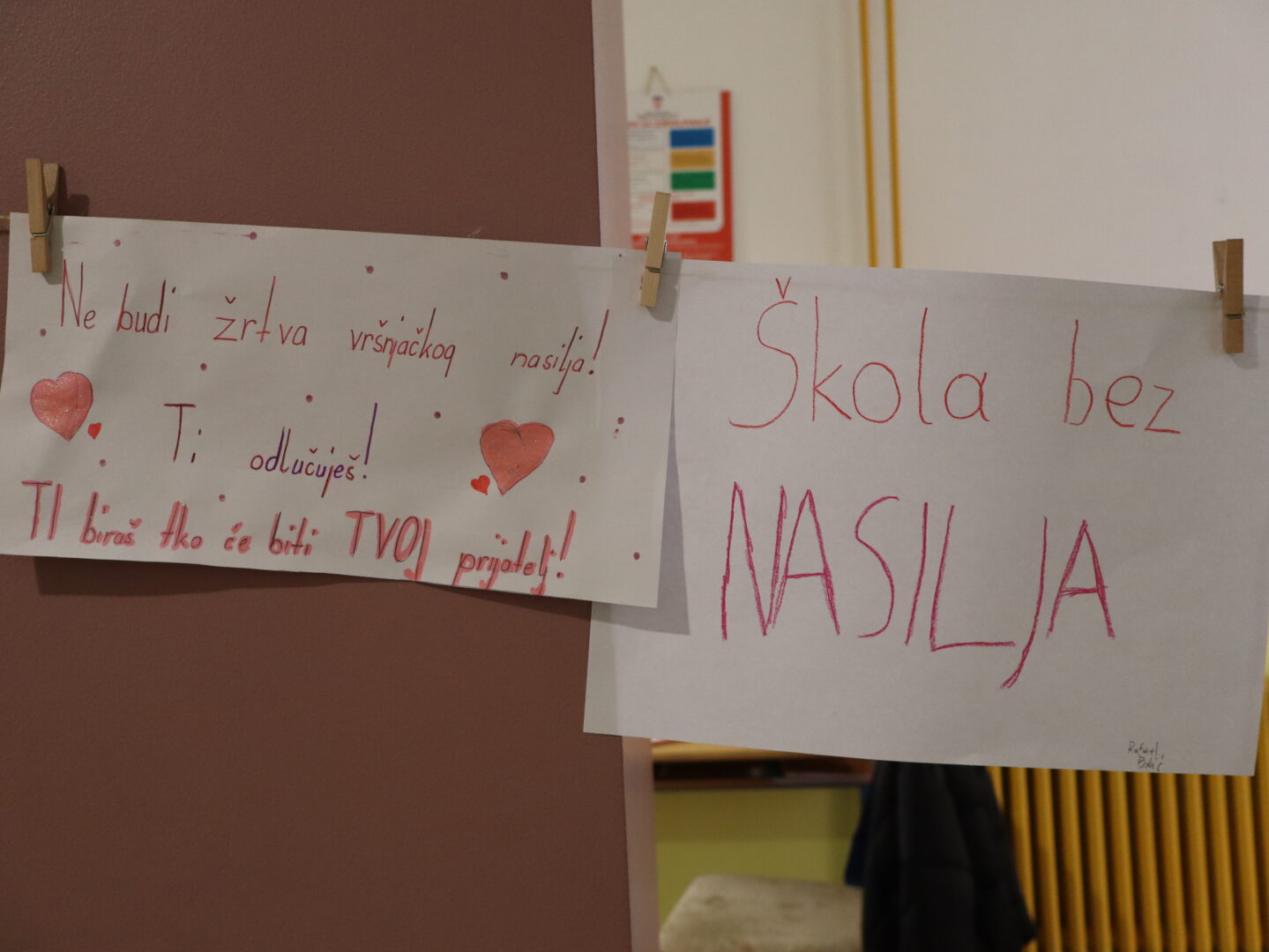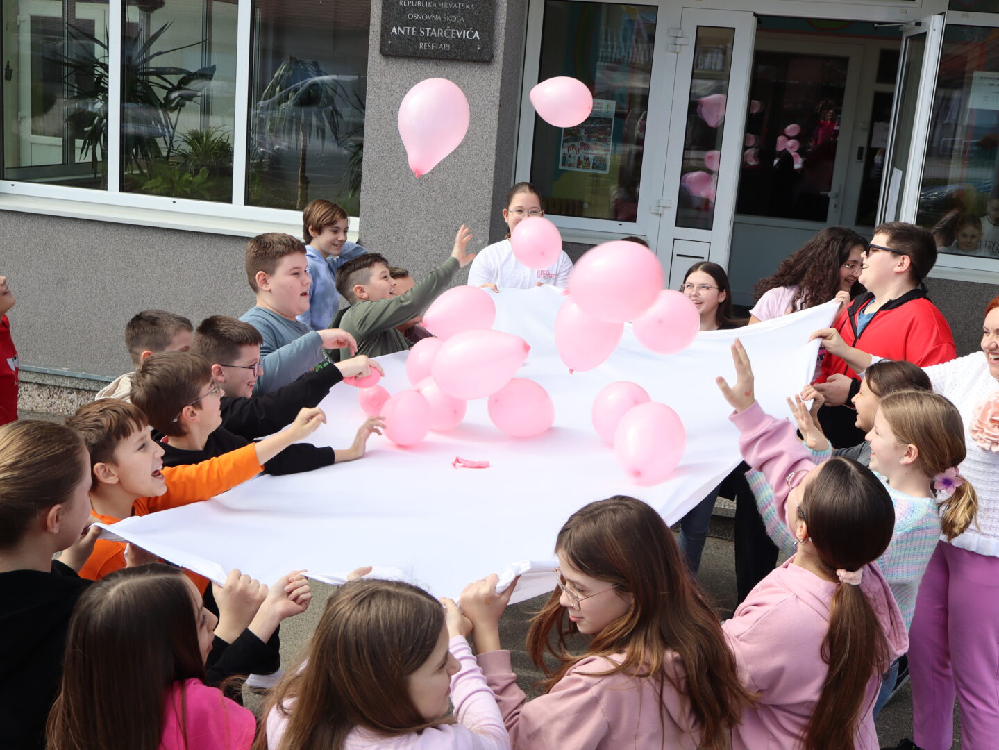 Pedagoginja Marija Dautović i učiteljica njemačkog jezika i povijesti Dragana Gorički su u suradnji s drugim djelatnicima škole potaknule naše učenike na promišljanje o ovoj uvijek aktualnoj temi tako što su odjenuli ružičastu majicu ili neki drugi modni dodatak. Oni učenici koji nisu nosili ništa ružičasto, dobili su bedž od papira kako bi i oni mogli pružiti svoju podršku. Vjeroučiteljica Vesna Hodak je na satu razrednika s učenicima 5. razreda provela radionicu s ciljem promicanja prijateljstva i mirnog rješavanja sukoba. Učenici su tijekom nastave toga dana pisali poruke protiv nasilja, koje su objesili na „Zid poruka“ u prizemlju škole. Također su učenici zaigrali igru s ružičastim balonima koja je imala za cilj zajedničkim snagama spriječiti balone da odlete te tako potaknuti zajedništvo i dobre odnose jednih s drugima.