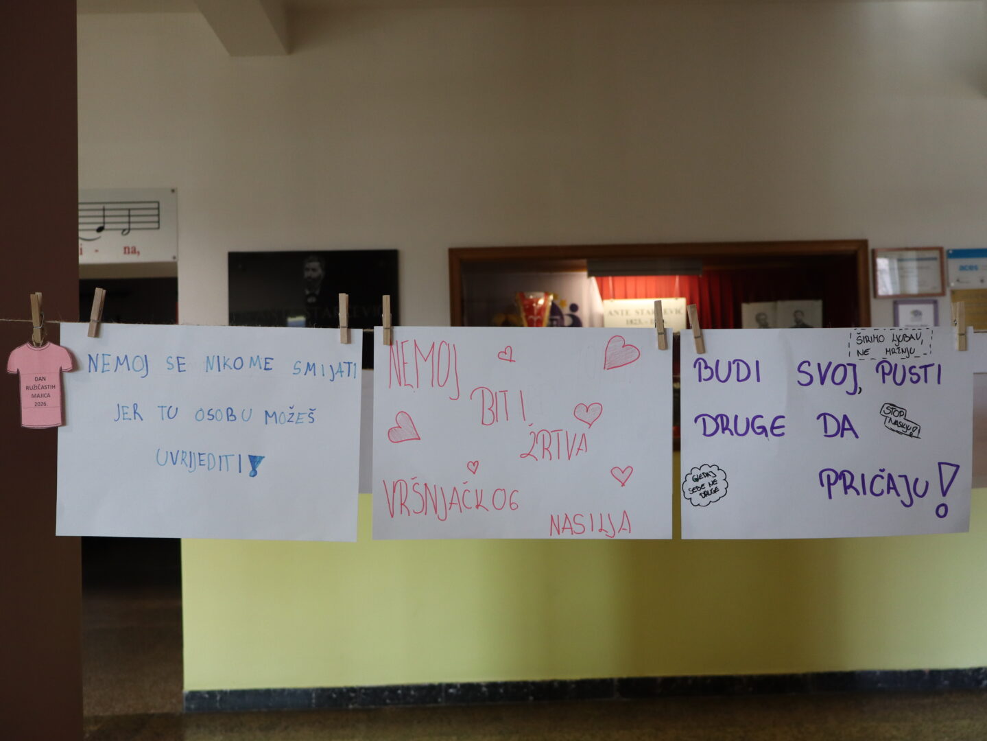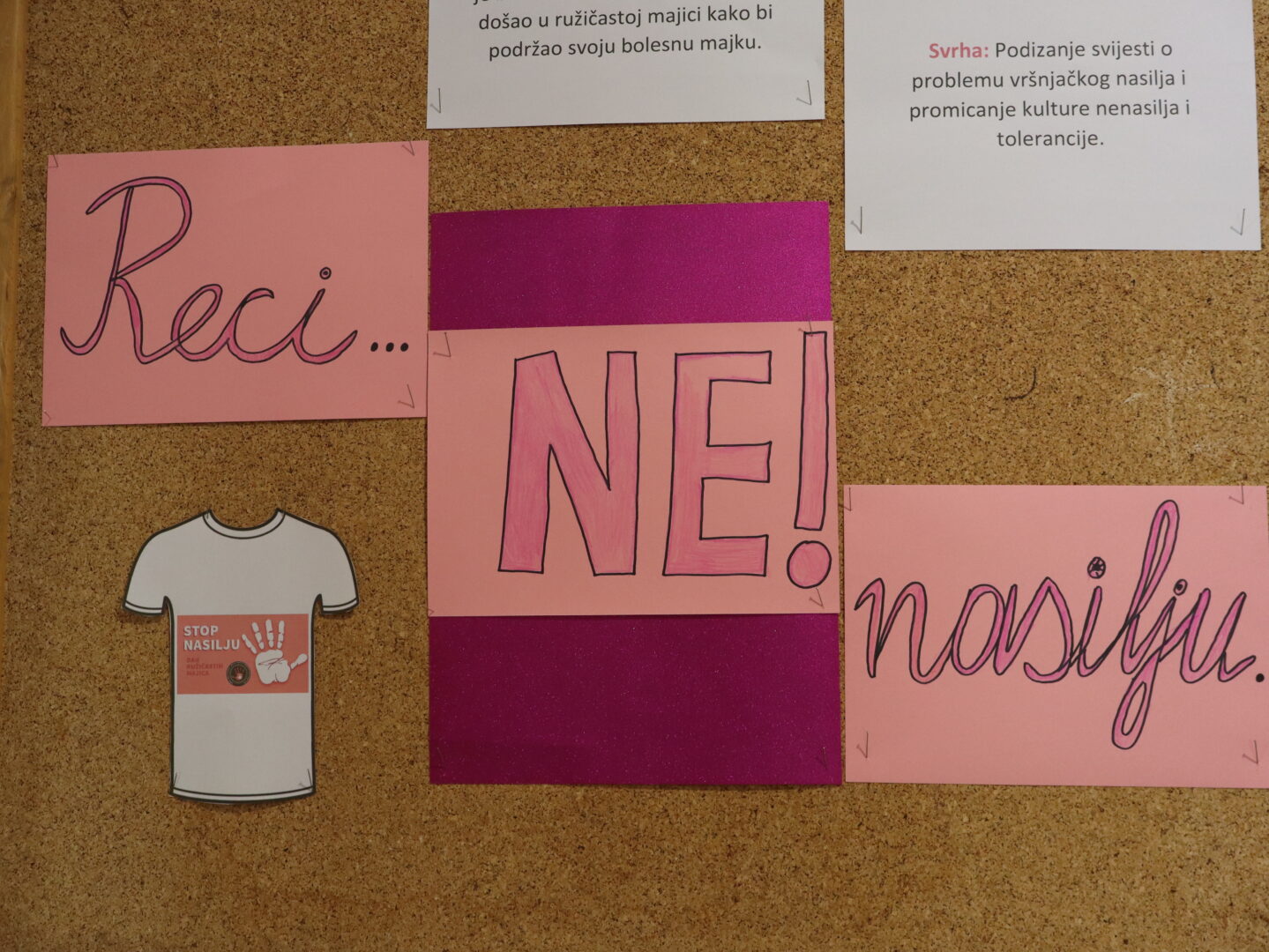 Dan ružičastih majica, poznat i kao Međunarodni dan borbe protiv vršnjačkog nasilja, obilježava se s ciljem podizanja svijesti o problemu vršnjačkog nasilja i promicanja kulture nenasilja i tolerancije među mladima posljednje srijede u veljači. U našoj školi obilježen je 25. veljače 2026. nizom aktivnosti.