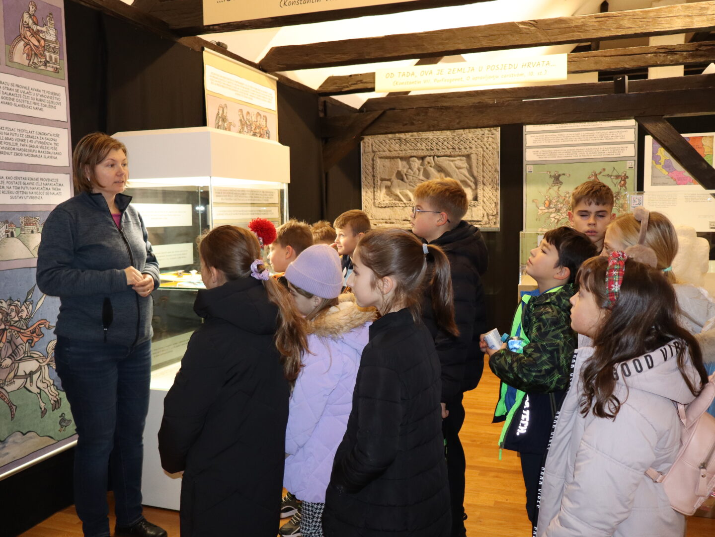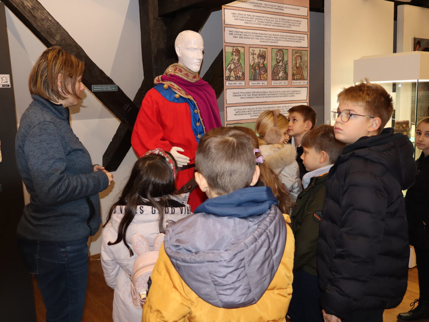 Nakon knjižnice prošetali smo se do Gradskog muzeja iako sam radije htjela zastati na klizalištu kraj kojeg smo prošli. U Muzeju smo pogledali izložbu o ratnicima iz davne prošlosti o kojoj su nam govorile kustosice Ana Pavleković Žeruk i Jelena Kovre. Vidjeli smo ljudski kostur, mačeve, ratna odijela, novac, štitnike za noge i glavu, gospodska odijela i dr. Izložba također predstavlja doba hrvatskih kraljeva, a najpoznatiji među njima je kralj Tomislav. Na izlasku smo se mogli potpisati u knjigu posjetitelja. Nakon razgledavanja izložbe uputili smo se prema autobusnom kolodvoru. Čekali smo vozača koji nas je vratio na manje zanimljivu nastavu matematike.