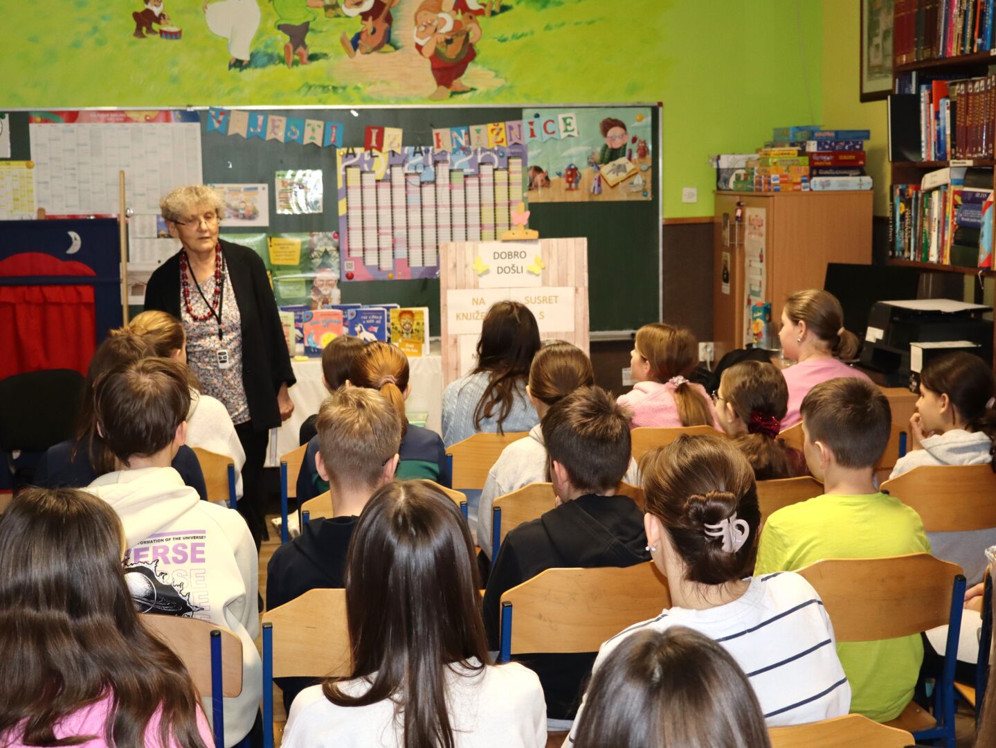U četvrtak, 19. veljače 2026., u knjižnici naše škole ugostili smo suvremenu hrvatsku književnicu za djecu i mlade – Nadu Mihoković Kumrić. Književnom susretu nazočili su učenici od 4. do 8. razreda u pratnji svojih učitelja.