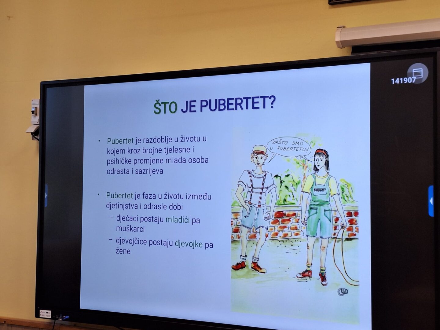 Dana 19. prosinca 2025. ispred Službe za školsku i adolescentnu medicinu Nova Gradiška medicinska sestra Monika Milak održala je predavanje za učenike 5.a razreda. Tema predavanja bila je iz područja Zdravstvenog odgoja – Pubertet. Sestra Monika je učenicima sa stručnog stajališta, a opet na razumljiv način ukazala i objasnila učenicima sve promjene koje se događaju u tom osjetljivom razdoblju njihova života i odrastanja. Učenici su kroz predavanje dobili korisne informacije i savjete, a na kraju su mogli postavljati pitanja na koja su dobili stručne odgovore.