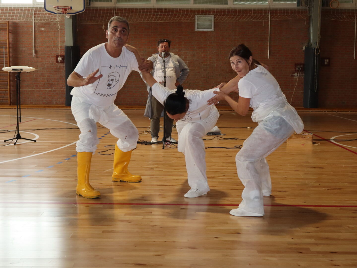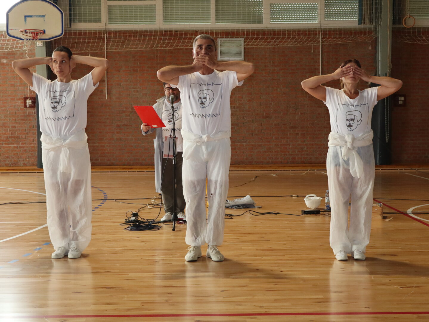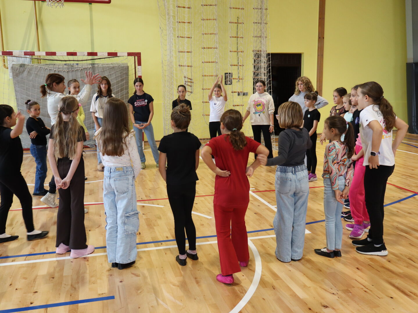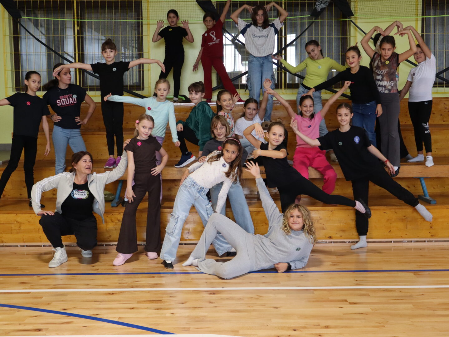 Program se održao u sportskoj dvorani i započeo je plesnom radionicom za manju skupinu učenika predmetne nastave i za učenike plesne skupine naše škole s njihovom voditeljicom Kristinom Blažević. Riječ je o više tematskih radionica, koje na koncu rezultiraju umjetničkim vizijama i kreativnim radovima te proizvode elemente pokreta, plesa, teksta, glasa i zvuka. Uz korištenje rekvizita iz predstave (neon lampa, antena kišoobran, antena, instrument teremin, loop pedala i mikrofon te instrument ”šiimunkofon”) umjetnici su primijenili različite pristupe u radionici. Time se djeci i mladima pruža izbor na odabir igre, teme koja se povezuje u stvaralačkom procesu i potiče ih se na njihovo kreativno izražavanje uz edukativan pristup.