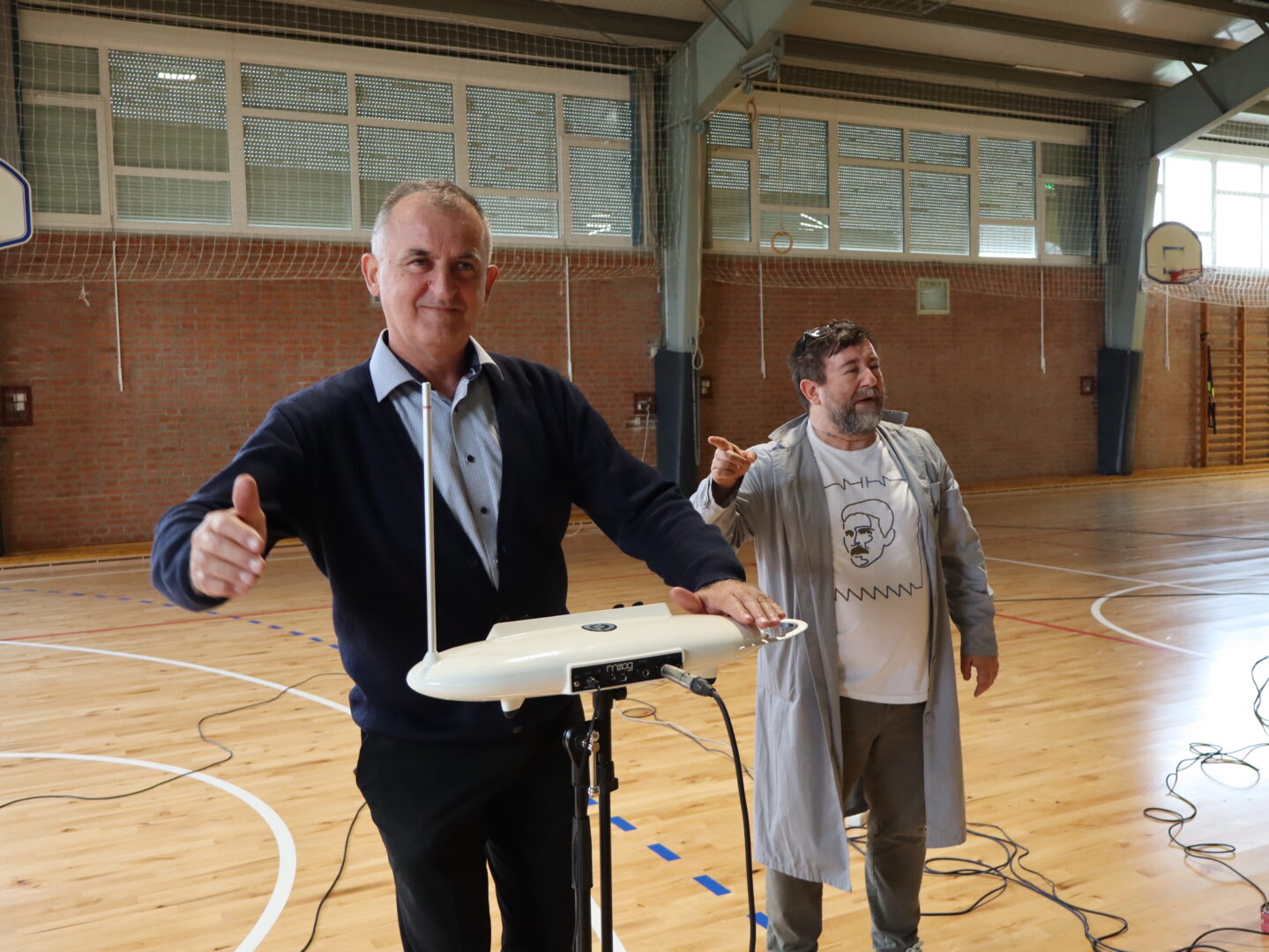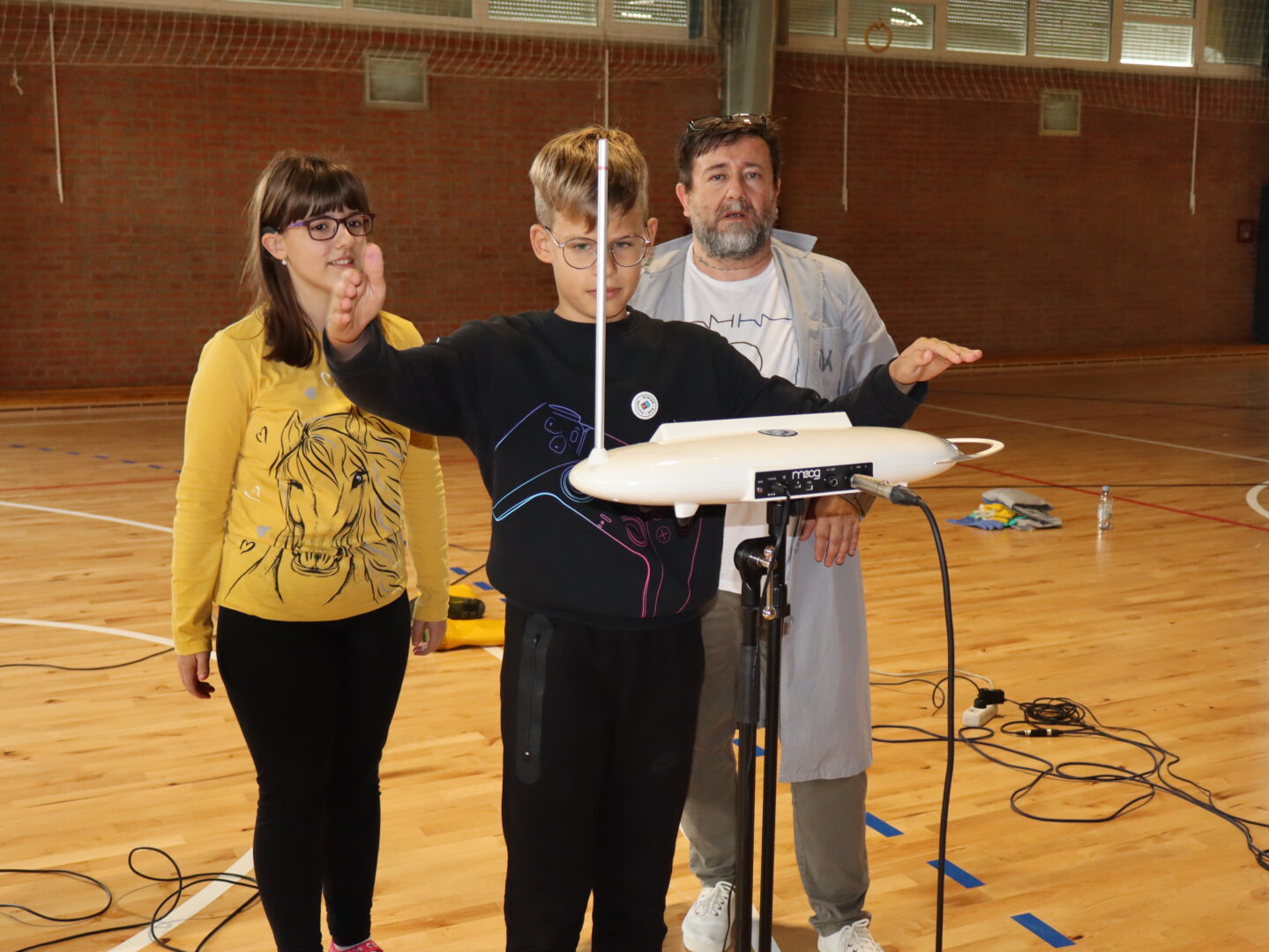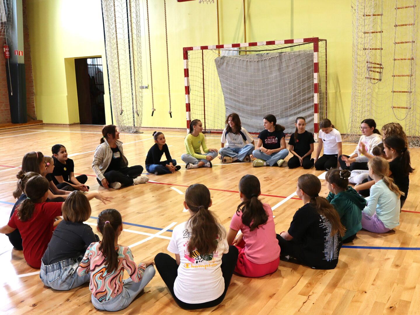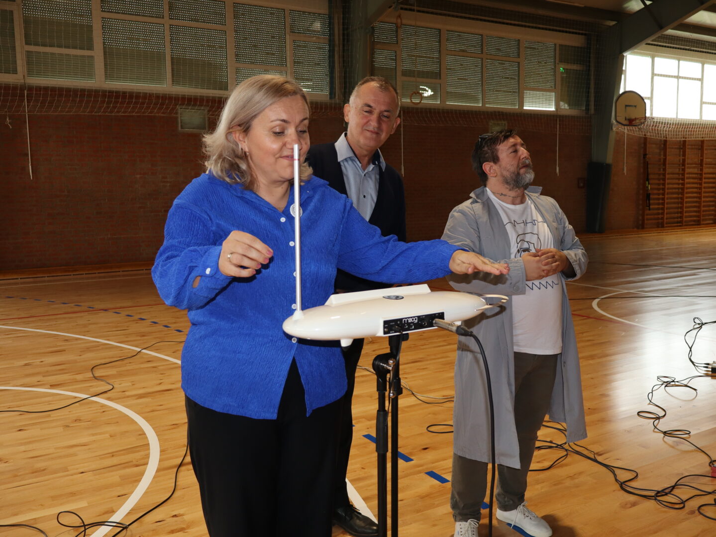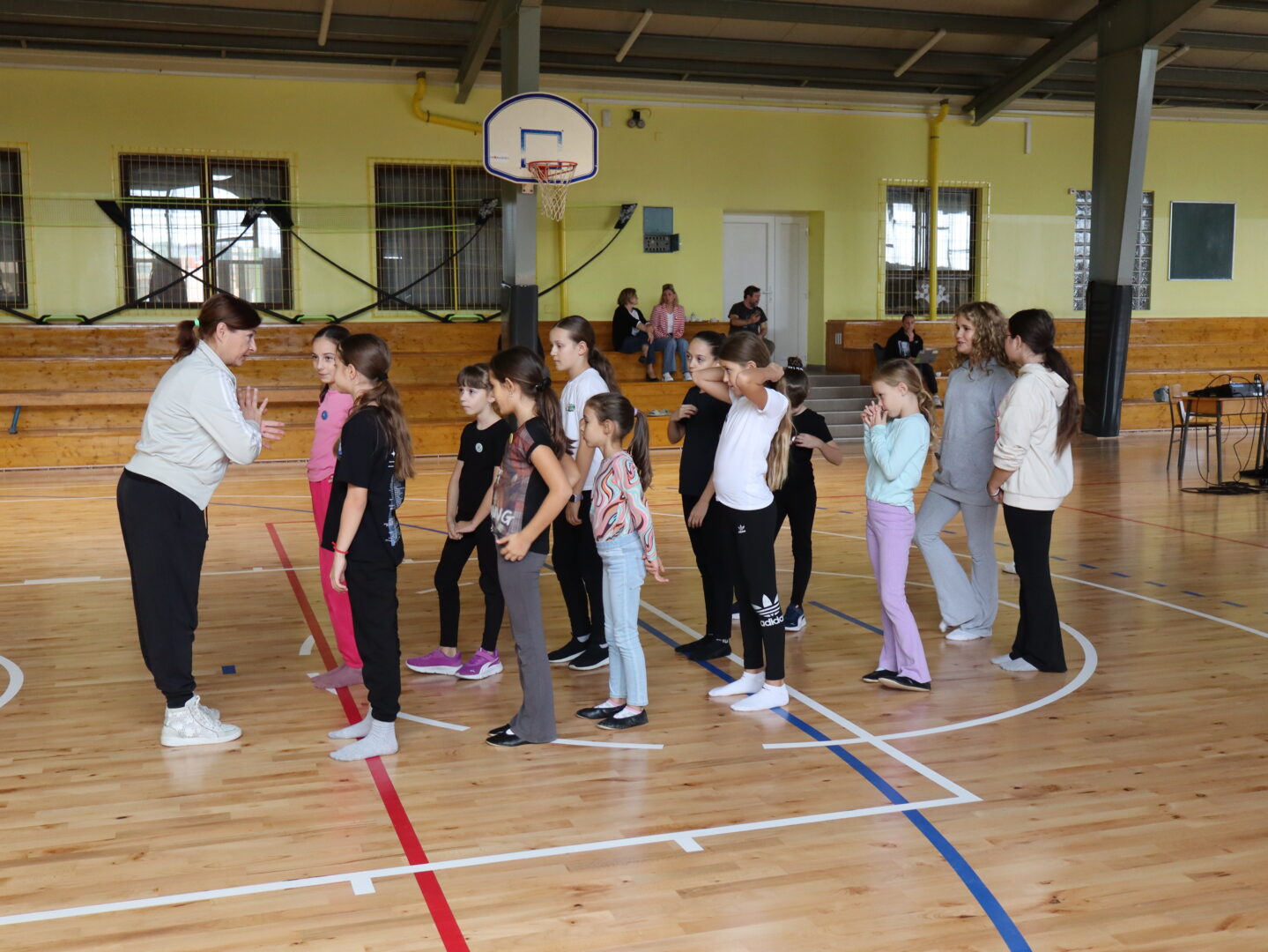 Program se održao u sportskoj dvorani i započeo je plesnom radionicom za manju skupinu učenika predmetne nastave i za učenike plesne skupine naše škole s njihovom voditeljicom Kristinom Blažević. Riječ je o više tematskih radionica, koje na koncu rezultiraju umjetničkim vizijama i kreativnim radovima te proizvode elemente pokreta, plesa, teksta, glasa i zvuka. Uz korištenje rekvizita iz predstave (neon lampa, antena kišoobran, antena, instrument teremin, loop pedala i mikrofon te instrument ”šiimunkofon”) umjetnici su primijenili različite pristupe u radionici. Time se djeci i mladima pruža izbor na odabir igre, teme koja se povezuje u stvaralačkom procesu i potiče ih se na njihovo kreativno izražavanje uz edukativan pristup.
